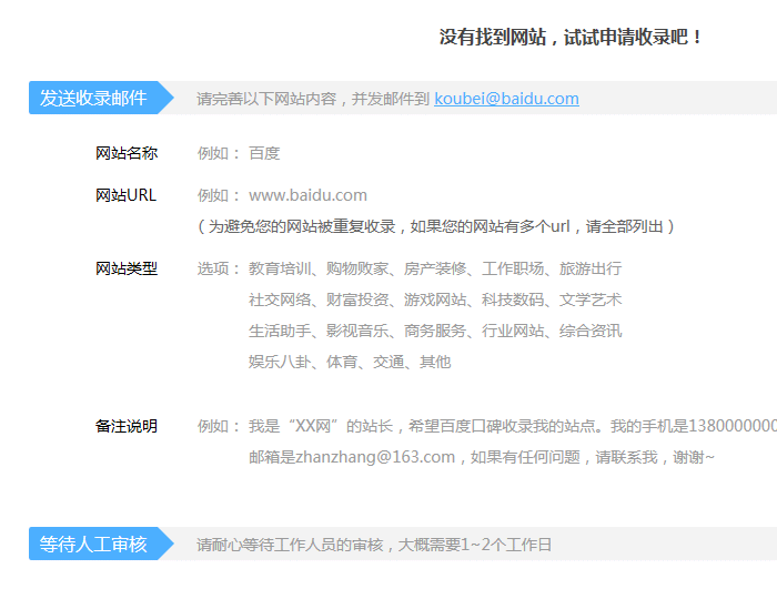 大多數(shù)網(wǎng)站并沒(méi)有好評(píng)的真實(shí)數(shù)據(jù),因?yàn)檎鹃L(zhǎng)沒(méi)有向百度口碑提交人工審核,人工審核方式如下圖:
